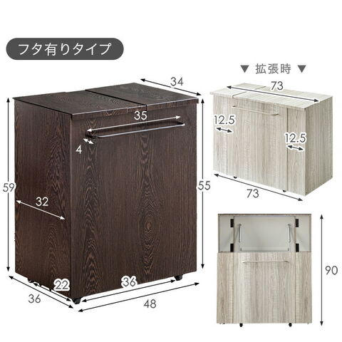 | サイズ | 【フタ無しタイプ】幅48/73×奥行36×高さ58cm 【フタ有りタイプ】幅48/73×奥行36×高さ59cm |