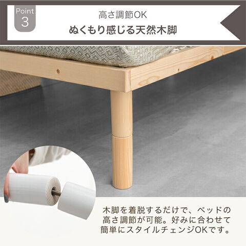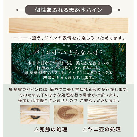 | 備考 | 【組立品/脚のみ取り付け】 ※配送は全て宅配便(1人)での玄関渡しとなります。大型商品や重量商品、エレベーターの無い2階以上にお住まいのお客様は、玄関口までの搬入のお手伝いをお願いしております事をご了承ください。 ※すのこの上に立つ場合はさん木の上に足をかけるなど強度の弱い部分に体重がかからないようにご注意ください。 ※商品の寸法はロット・測り方によって、ご使用に差し支えのない程度の多少の誤差が生じる場合がございます。予めご了承下さい。 ※すのこに黒っぽい斑点が多少ありますが、小さな節やマツヤニによる染みなどの場合がございます。使用上問題はございませんので、予めご了承ください。 ※すのこに青っぽい染みのようなものがある場合がございますが、松系統に良く見られるものであり、カビではございません。人体・強度に影響はございませんので、予めご了承ください。 ※天然木特有の臭いがある場合がございます。臭いが気になる場合は、開封時・組立時に換気を行なってください。 ※強度を維持する為にすのこに反り加工を施しております。湿度の関係でそりが強くなる場合がございますが、使用上問題はございませんので、予めご了承ください。 |