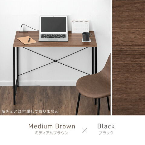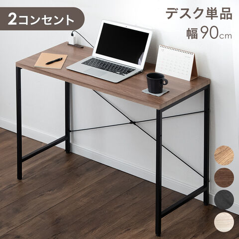 【即納】 コンセント付き デスク 幅90 単品 机 PC ワークデスク 学習机 高校生 パソコン 幅90cm コンパクト 軽量 コンセント 在宅 おしゃれ シンプル 17630116〔ミディアムブラウン×ブラック〕