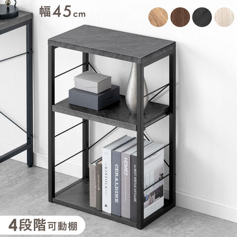 【即納】 ラック 3段 コンパクト 幅45 サイドラック オープンラック ディスプレイラック 多目的 収納棚 シェルフ 本棚 可動棚 スリム 北欧 モダン シンプル おしゃれ 17630117〔ストーングレー×ブラック〕