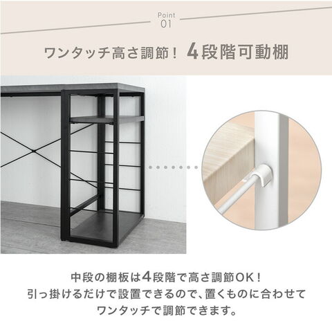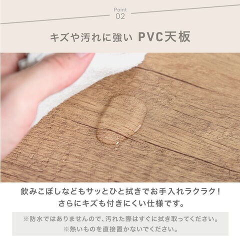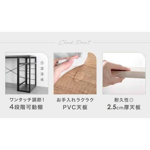 ・耐久性に優れた2.5cm厚天板 └キズや汚れに強いPVC ・温もりのある木目調orモダンな石目調 ・高さ4段階調節!ワンタッチ可動棚 ・マットな質感の粉体塗装 |