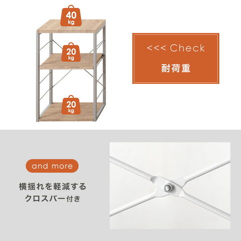 | 耐荷重 | 天板:約40kg、棚板:各段約20kg |
