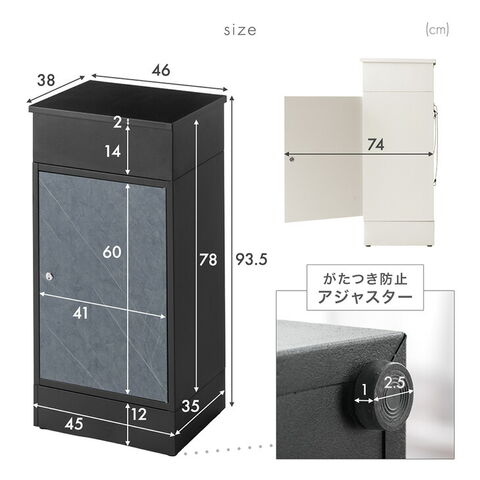 | サイズ | 外寸:幅46x奥行38x高さ93.5cm アンカーボルト施工時の穴サイズ(目安) 直径:約10mm 深さ:約70mm |