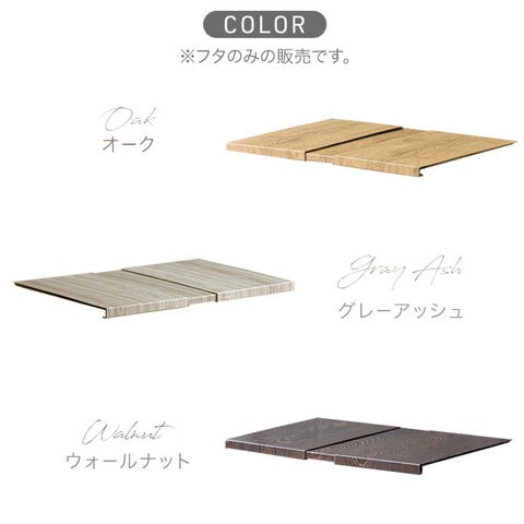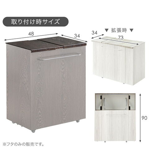| 備考 | 【組立品】 ※配送は全て宅配便(1人)での玄関渡しとなります。大型商品や重量商品、エレベーターの無い2階以上にお住まいのお客様は、玄関口までの搬入のお手伝いをお願いしております事をご了承ください。 ※生産工程上、パーツによって色味が異なる場合がございます。 ※こちらは当店の「木目調ダストワゴン」専用 フタ販売ページです。 |
