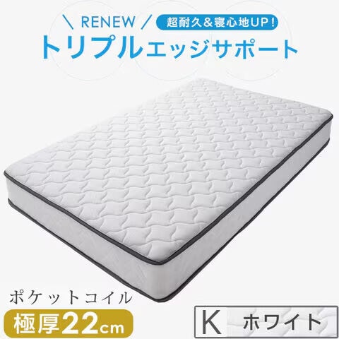 快適3Dメッシュ! 厚み22cm ポケットコイル マットレス キング シックハウス対策済 エッジサポート ニット生地 スプリングマット ベッドマット 圧縮梱包 17800033〔ホワイト〕【予約】1月下旬※1/31までに出荷予定