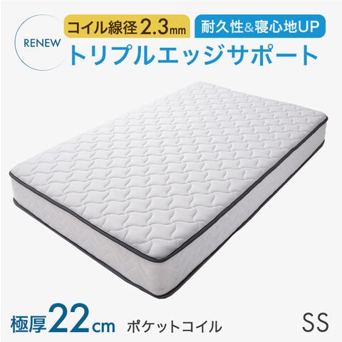 【即納】 RENEW 快適3Dメッシュ! ポケットコイル マットレス セミシングル 厚み22cm 線径2.3mm トリプルエッジサポート ニット生地 シックハウス対策済 ポケットコイルマット スプリングマット ベッドマット 圧縮梱包 1780014780〔ホワイト〕