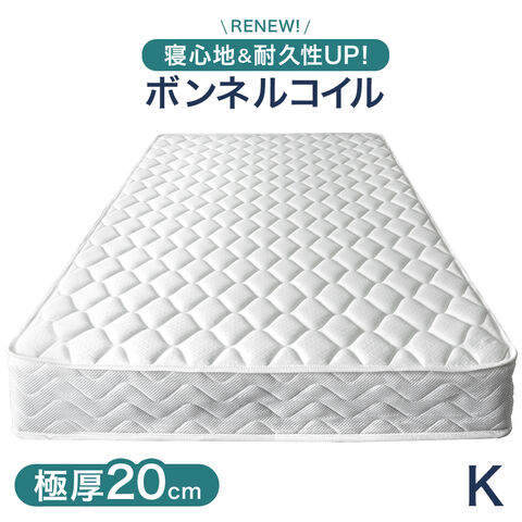 RENEW 寝心地&耐久性UP!極厚 20cm 高密度 ボンネルコイル 高反発 マットレス キング コイルマットレス ボンネルマットレス スプリングマット ボンネルマット ボンネル ベッド用 ベッドマット 厚め 硬め 17800031〔ホワイト〕【予約】1月上旬※1/10までに出荷予定
