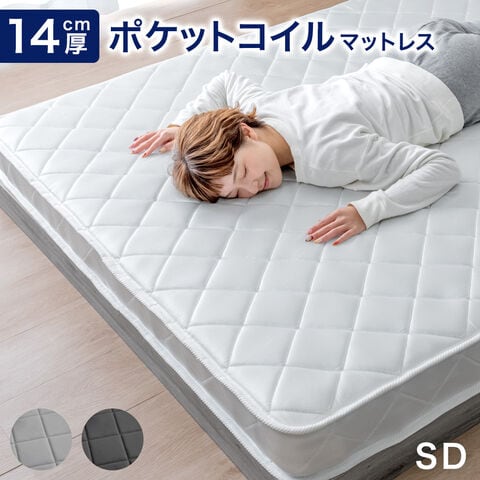 【即納】 ポケットコイル マットレス セミダブル 厚み14cm マット ポケットコイルマットレス スプリングマットレス ベッドマットレス ベッドマット ホワイト ポケットコイルマット 77500000〔ホワイト〕