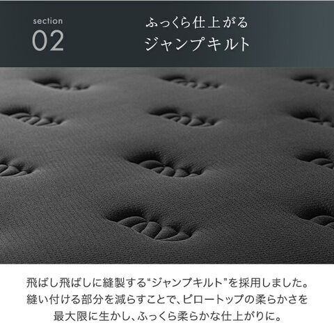 ・ワンランク上の寝心地を叶える ピロートップ付き ・ふっくら仕上がるジャンプキルト ・身体を面で支えるボンネルコイル ・やさしい肌触りのニット生地 ・清潔に使える抗菌/防ダニ加工 ・通気性に優れた側面メッシュ ・ISO9001認定工場で生産した安心の品質 ・スピード配送&搬入らくらく圧縮梱包 |