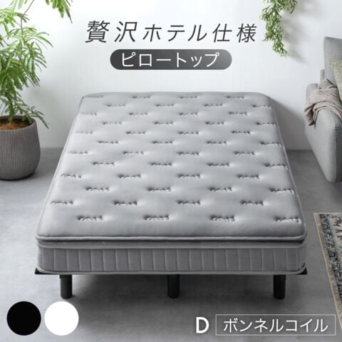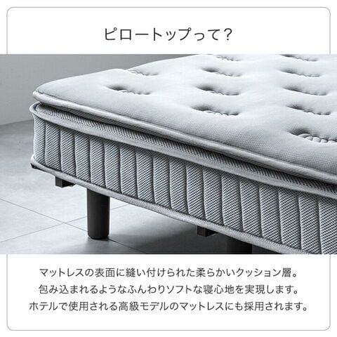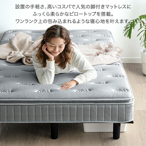 【即納】 ワンランク上の ピロートップ 脚付きマットレス ダブル ボンネルコイル 組立簡単 抗菌 防臭 防ダニ ベッド 脚付きベッド 脚付マットレス マットレス マットレス付き 17800258〔グレー〕