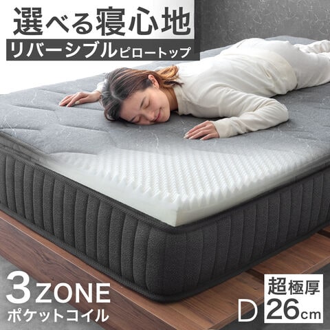 選べる寝心地! リバーシブル ピロートップ ダブル マットレス ポケットコイル マット ポケットコイル マットレス コイルマットレス ベッドマット ベッドマットレス コイル 洗える 抗菌 防臭 1781014300【予約】1月下旬※1/31までに出荷予定