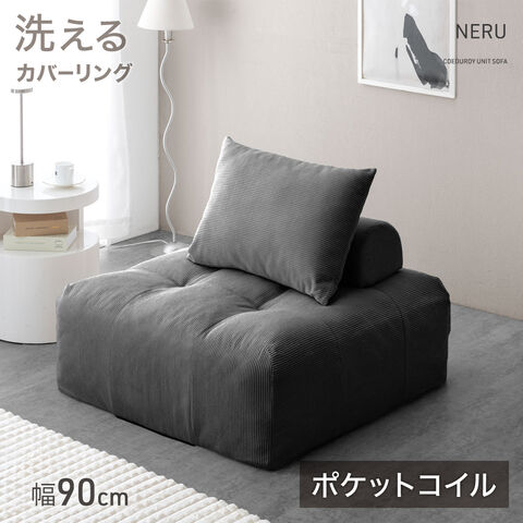 ユニットソファ 洗える カバーリング ポケットコイル ローソファ フロアソファ ブロックソファ 組み合わせ カバーリングソファ アイランド ソファ 背もたれクッション 1人掛け おしゃれ 17810145〔チャコールグレー〕