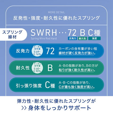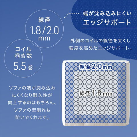 | 素材 | 張地:ポリエステル100% 中材:ポケットコイル、シリコンフィル、25Dウレタン、 裏地:滑り止め生地 |