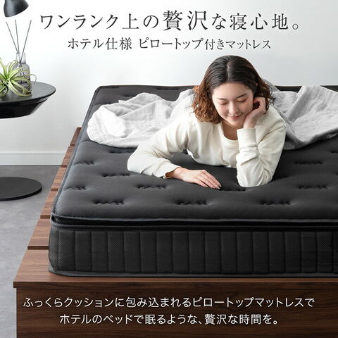 贅沢ホテル仕様 ピロートップ ボンネルコイル セミダブル マットレス 抗菌 防臭 防ダニ 極厚22cm ボンネル コイルマットレス スプリングマットレス ベッドマットレス メッシュ 厚め 17810150〔ブラック〕