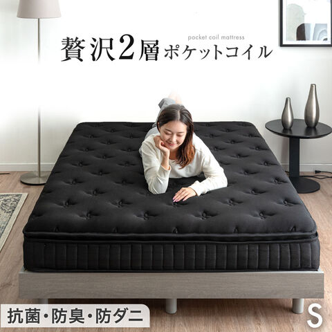【即納】 贅沢2層 ポケットコイル マットレス シングル 極厚22cm 抗菌 防臭 防ダニ 高反発ウレタン内蔵 ニット メッシュ コイルマットレス スプリングマットレス 柔らかめ 17810160〔ブラック〕