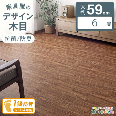 【マネ出来ない品質】 ジョイントマット 木目調 32枚 6畳 59cm 1級防音 抗菌 防臭 木目 洗える カーペット フロアマット 床暖房対応 プレイマット カーペット マット 赤ちゃん クッションマット 18700013〔ウォールナット〕