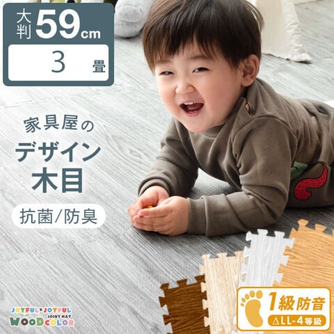 【即納】 【マネ出来ない品質】 ジョイントマット 木目調 16枚 3畳 59cm 1級防音 抗菌 防臭 木目 洗える カーペット フロアマット 床暖房対応 プレイマット カーペット マット 赤ちゃん クッションマット 18700054〔アッシュグレー〕