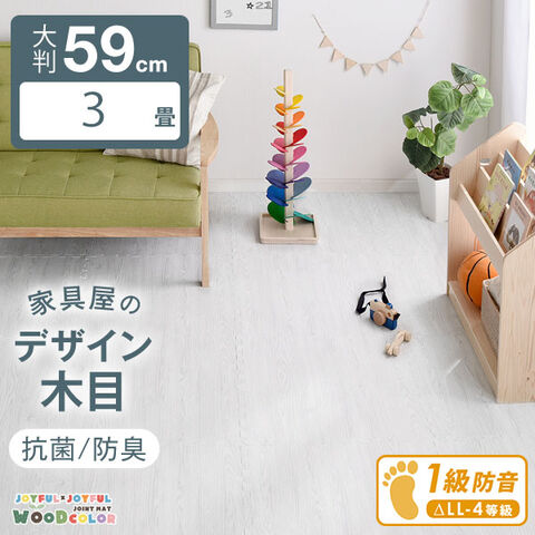 【マネ出来ない品質】 ジョイントマット 木目調 16枚 3畳 59cm 1級防音 抗菌 防臭 木目 洗える カーペット フロアマット 床暖房対応 プレイマット カーペット マット 赤ちゃん クッションマット 18700054〔オフホワイト〕