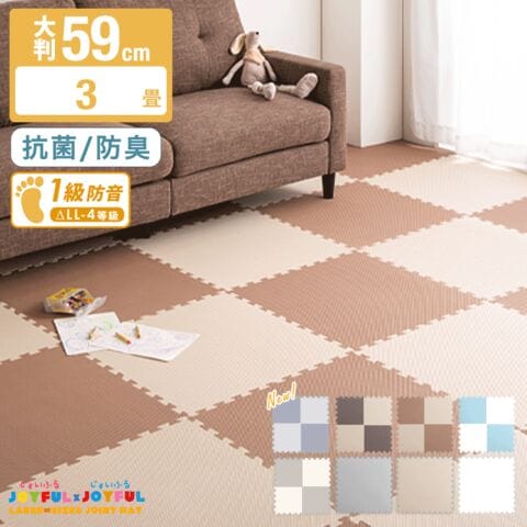 ジョイントマット 3畳 大判 プレイマット 59cm 16枚 7物質検査 1級防音 サイドパーツ付 ジョイント フロアマット 断熱 キッズマット マット 18700011〔モカ×ベージュ〕