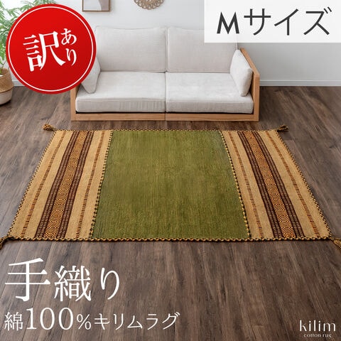 【在庫限り!訳あり価格】 手織り キリムラグ インド綿100% 長方形 140×200 ラグマット カーペット 絨毯 薄手 コットン キリム エスニック 柄 アジアン 夏用 【後払いNG】20010009〔リーフグリーン〕