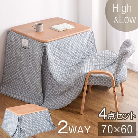 パーソナルこたつ 4点セット 2WAY こたつ パソコンデスク 70×60 こたつセット ハイタイプ ロータイプ 一人暮らし 在宅ワーク 在宅勤務 テレワーク 2130002922〔本体:グレー×布団:グレージュ〕