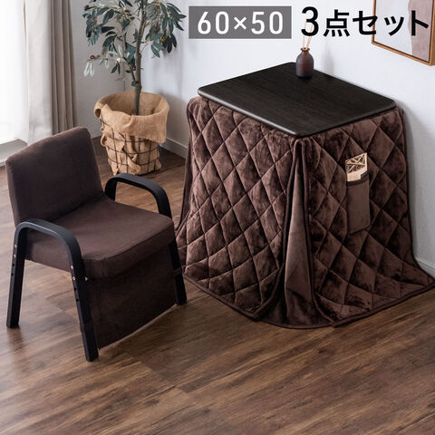パーソナルこたつ 3点セット 掛布団 チェア 3段階 高さ調節 ハイタイプ 一人用 こたつ 60×50 省スペース コンパクト 長方形 こたつデスク 高さ調整 小型 リビング おしゃれ 2130013240〔ブラウン〕【予約】11月下旬※11/30までに出荷予定