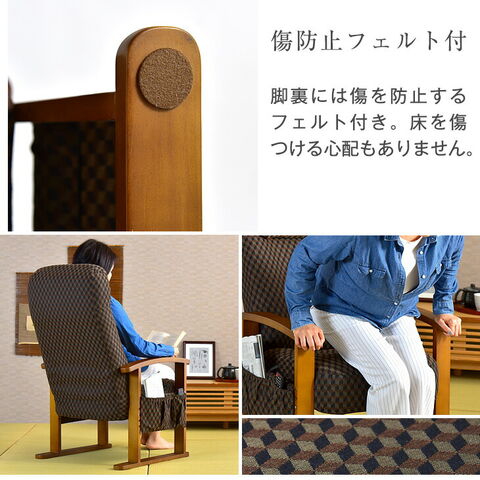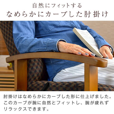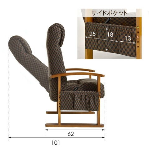 【即納】 リクライニングチェア 木製レバー式 ボリュームヘッド 高座椅子 リラックスチェア ポケット付き ハイバック 座椅子 椅子 リクライニング ヘッドレスト 肘掛 木製 パーソナルチェア 一人掛け 肘付 2130013410