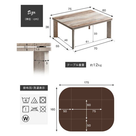 こたつ 2点セット 75×60 こたつ + 掛布団 省スペース コタツ こたつセット テーブル こたつテーブル セット 炬燵 火燵 コンパクト 一人暮らし 長方形 21300147〔シャビーアッシュ+布団:グレー〕【予約】11月中旬※11/20までに出荷予定