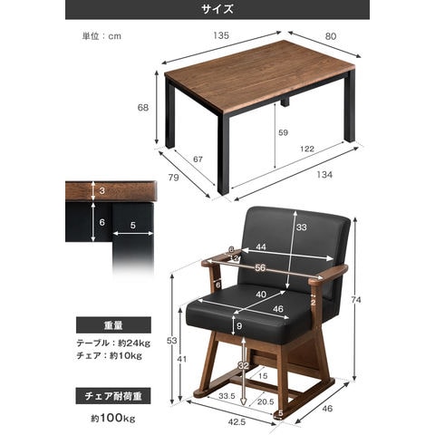 | 【サイズ】外寸:約幅135x奥行80x高さ68cm、天板厚:約3cm 【重量】約24kg 【耐荷重】約60kg 【素材】天板表面材:天然木化粧繊維板(PU塗装)、脚部・幕板:ラバーウッド(PU塗装) 【生産国】インドネシア |