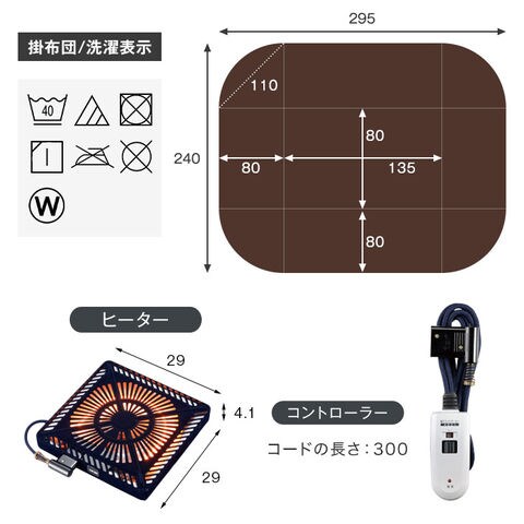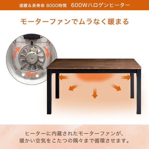【こたつテーブル】 ・ヴィンテージ調デザインダイニングこたつ ・温もり感じる天然木突板 ・速暖&長寿命600Wハロゲンヒーター ・確かな品質、メトロ工業製ヒーター ・ヒーターは安心の1年保証付き ・ON/OFF&温度調整が操作しやすい手元コントローラー 【チェア】 ・立ち座りらくらく肘掛付き回転式チェア ・脚元には暖気を遮る仕切り付き 【掛布団】 ・手触りが良く暖かいフランネル掛布団 ・リモコンなどを収納できるポケット付き |