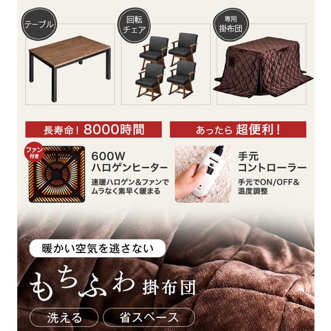 ヴィンテージ調 ダイニングこたつ 6点セット 速暖2秒 600Wハロゲンヒーター 手元コントローラー 4人掛け 135×80 長方形 天然木 オーク 回転椅子 回転いす 回転チェア 21300159【予約】2月下旬※2/28までに出荷予定