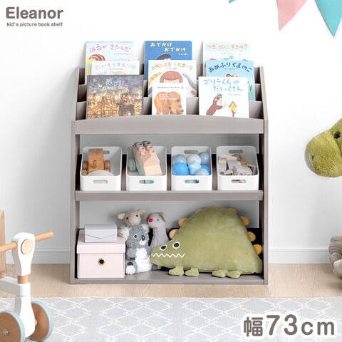 現役ママが考えた 絵本ラック 幅73 3段 ディスプレイ 絵本棚 キッズ スリム 本棚 絵本 ラック おもちゃ箱 収納 子供用 リビングラック 21300163〔グレージュ〕【予約】1月中旬※1/20までに出荷予定
