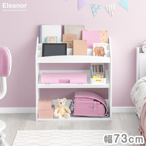 現役ママが考えた 絵本ラック 幅73 3段 ディスプレイ 絵本棚 キッズ スリム 本棚 絵本 ラック おもちゃ箱 収納 子供用 リビングラック 21300163〔オフホワイト〕【予約】1月中旬※1/20までに出荷予定