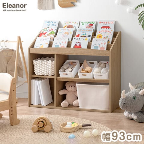 絵本ラック 幅93 3段 ディスプレイ 絵本棚 キッズ スリム 本棚 絵本 ラック おもちゃ箱 収納 子供用 リビングラック ブックラック 49605001〔シャビーナチュラル〕【予約】2月上旬※2/10までに出荷予定