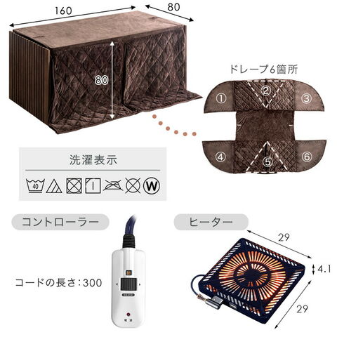 | サイズ | 【テーブル】幅160x奥行80x高さ70cm 【掛布団】160×80+80cm |