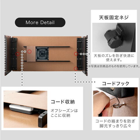 | 素材 | 【テーブル】 天板:高圧メラミン化粧繊維板 脚:天然木(ラバーウッド) 【掛布団】 側生地・中綿:ポリエステル100% |