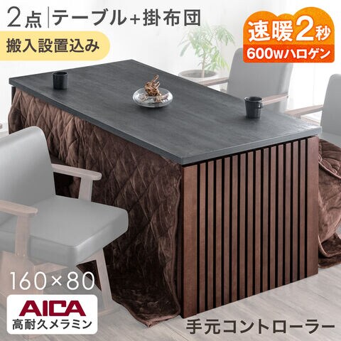 【搬入設置込み】 格子脚 ダイニングこたつ 2点セット 速暖2秒 600Wハロゲンヒーター 手元コントローラー 4人掛け 160×80 長方形 メラミン こたつ ハイタイプ こたつテーブル 【超大型】 99954125