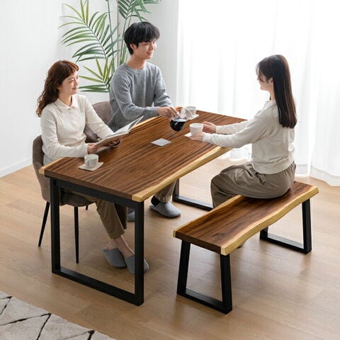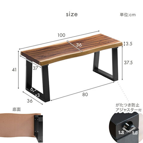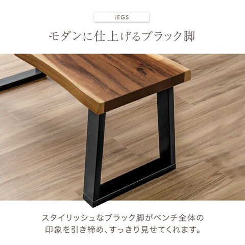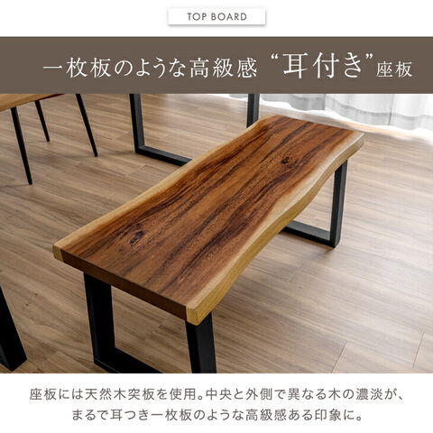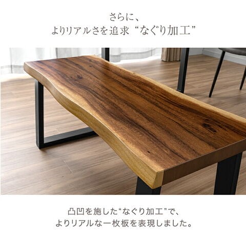 ・一枚板のような高級感を演出する“耳付き&なぐり加工”座板 ・キズや熱に強い PU塗装 ・スタイリッシュなブラック脚 |