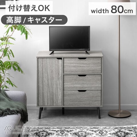 キャビネット 幅80cm サイドボード チェスト サイドチェスト 収納棚 タンス リビング収納 収納家具 スリム 扉付き 脚付き キャスター付き 北欧 おしゃれ 21310164〔アッシュグレー〕