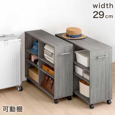 【即納】 押入れ収納 キャスター 付き 幅29cm 大容量 可動棚 スリム シンプル ワゴン マルチラック オープンラック 押し入れ収納 隙間収納 収納ボックス おしゃれ 21310167〔アッシュグレー〕