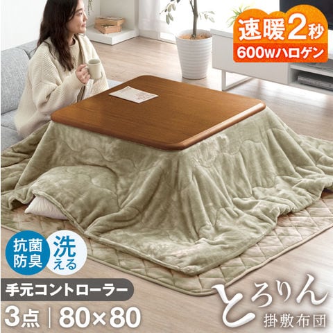速暖2秒!とろける肌触り こたつ 3点 セット 手元コントローラー付 洗える 掛敷布団 抗菌 防臭 こたつテーブル 正方形 80 こたつセット セット テーブル コタツ 電気こたつ こたつ布団 21800041 〔ブラウン×布団:ペールベージュ〕【予約】12月下旬※12/31までに出荷予定