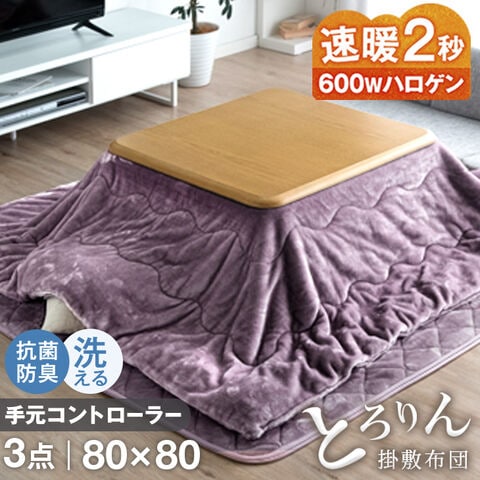 速暖2秒!とろける肌触り こたつ 3点 セット 手元コントローラー付 洗える 掛敷布団 抗菌 防臭 こたつテーブル 正方形 80 こたつセット セット テーブル コタツ 電気こたつ こたつ布団 21800041 〔ナチュラル×布団:ミスティラベンダー〕【予約】1月下旬※1/31までに出荷予定