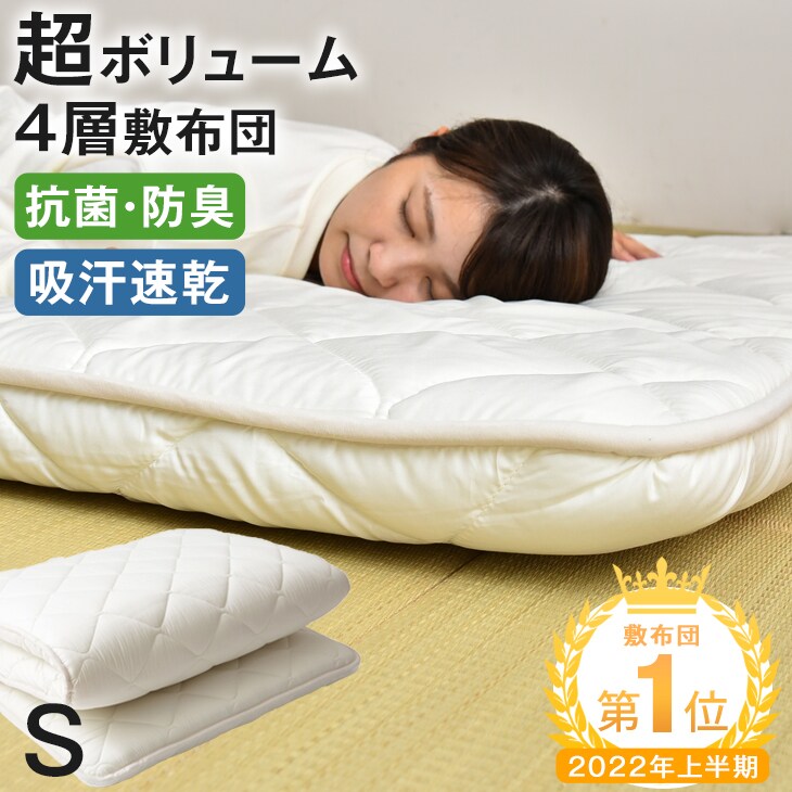 【即納】 ランキング1位!底付き軽減 極厚固綿8cm 4層敷き布団 シングルサイズ 日本製 防ダニ 抗菌防臭 吸汗速乾 固綿 敷布団 マットレス不要 四層敷 帝人マイティトップ テイジン 帝人ポリティ 国産 22200013