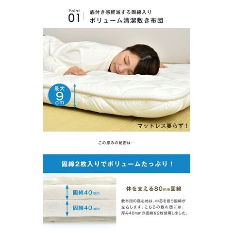 【お得2枚組】《ランキング1位》底付き軽減 極厚固綿8cm 4層敷き布団 シングルサイズ 2枚 セット 日本製 防ダニ 抗菌防臭 吸汗速乾 固綿 敷布団 マットレス不要 四層敷 帝人マイティトップ 国産 22200038