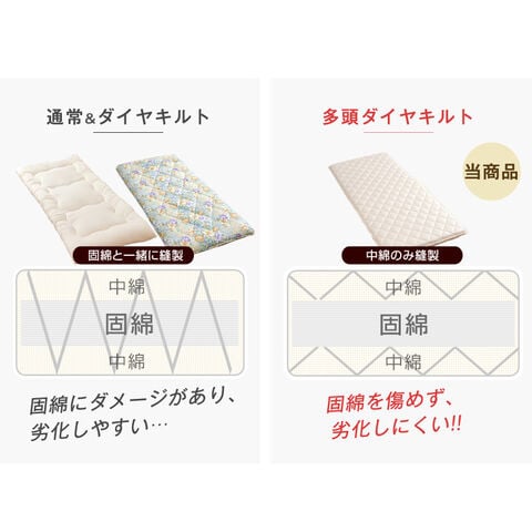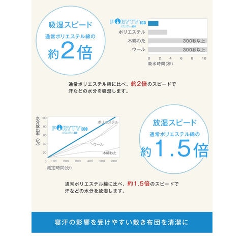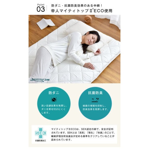 | 側地 ポリエステル100% 巻綿: ポリエステル100%(抗菌防臭防ダニわた 帝人マイティトップ2eco入り) 固綿 ポリエステル100%【 (吸汗速乾ポリティ)40mm ×2枚:合計80mm】 |