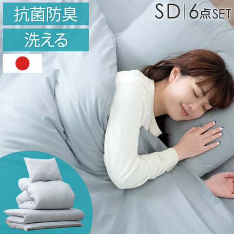 布団セット 6点セット セミダブル 日本製 国産 清潔 洗える 抗菌 防臭 各カバー付 組布団 掛布団 固綿入り 掛け布団 寝具セット 敷き布団 枕 布団 敷布団 22200025〔グレー〕【予約】12月下旬※12/31までに出荷予定