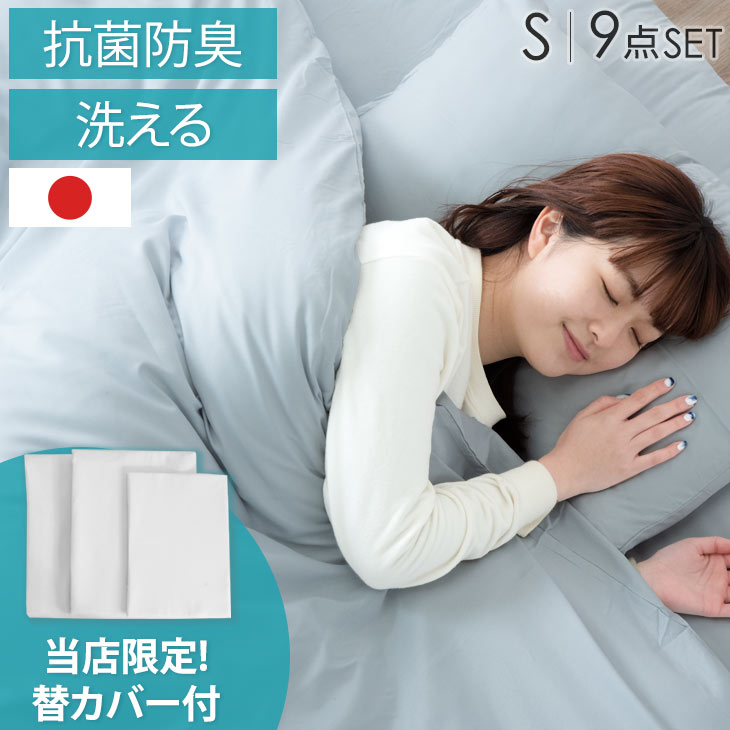 【即納】 替カバー付 日本製 布団セット 9点セット シングル 国産 清潔 固綿増量3kg 洗える 抗菌 防臭 各カバー付 組布団 掛布団 固綿入り 掛け布団 寝具セット 敷き布団 枕 布団 敷布団 22200042 〔アイボリー〕