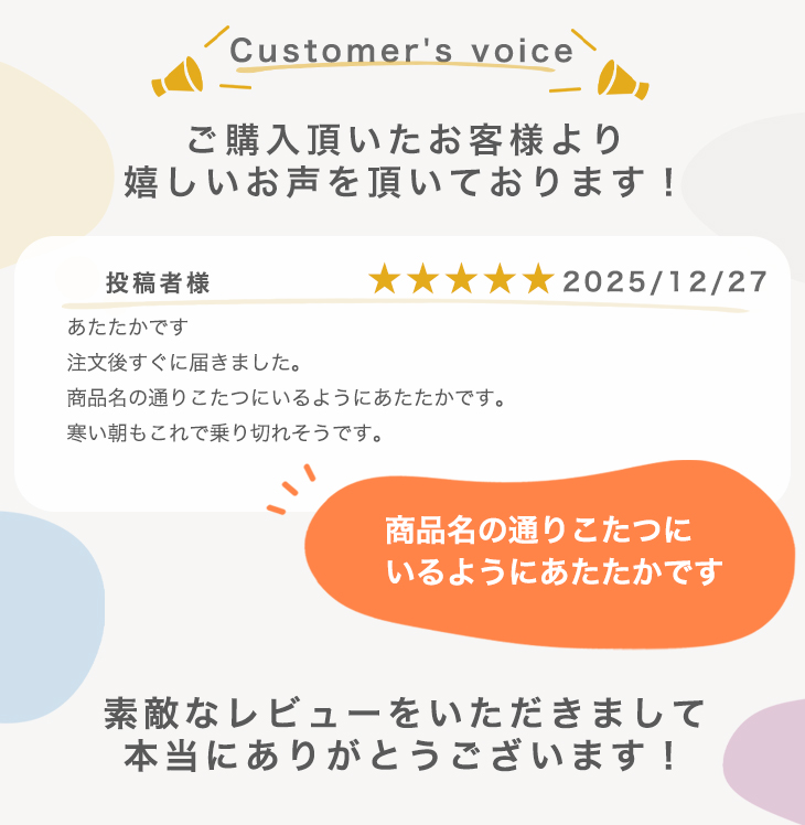 [側地] ポリエステル100% [詰め物] 「もはや、こたつ」綿 …吸湿発熱機能わた(合成繊維)10% ポリエステルわた90% |