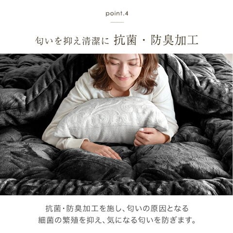 | 重量 | 【シングルサイズ】1.7kg(中綿充填量0.8kg) 【セミダブルサイズ】2.1kg(中綿充填量1kg) 【ダブルサイズ】2.3kg(中綿充填量1.1kg) |