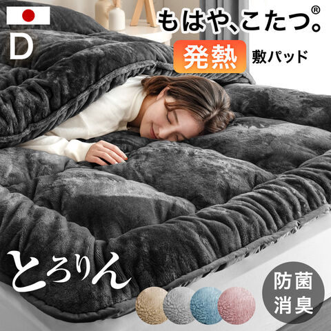 もはや、こたつ。(R) とろりん 敷パッド ダブル 吸湿発熱 日本製 抗菌 防臭 洗える ボリューム 敷きパッド 敷パット 敷きパット 冬 冬用 寝具 国産 日本 ふわふわ 22200064〔チャコールグレー〕